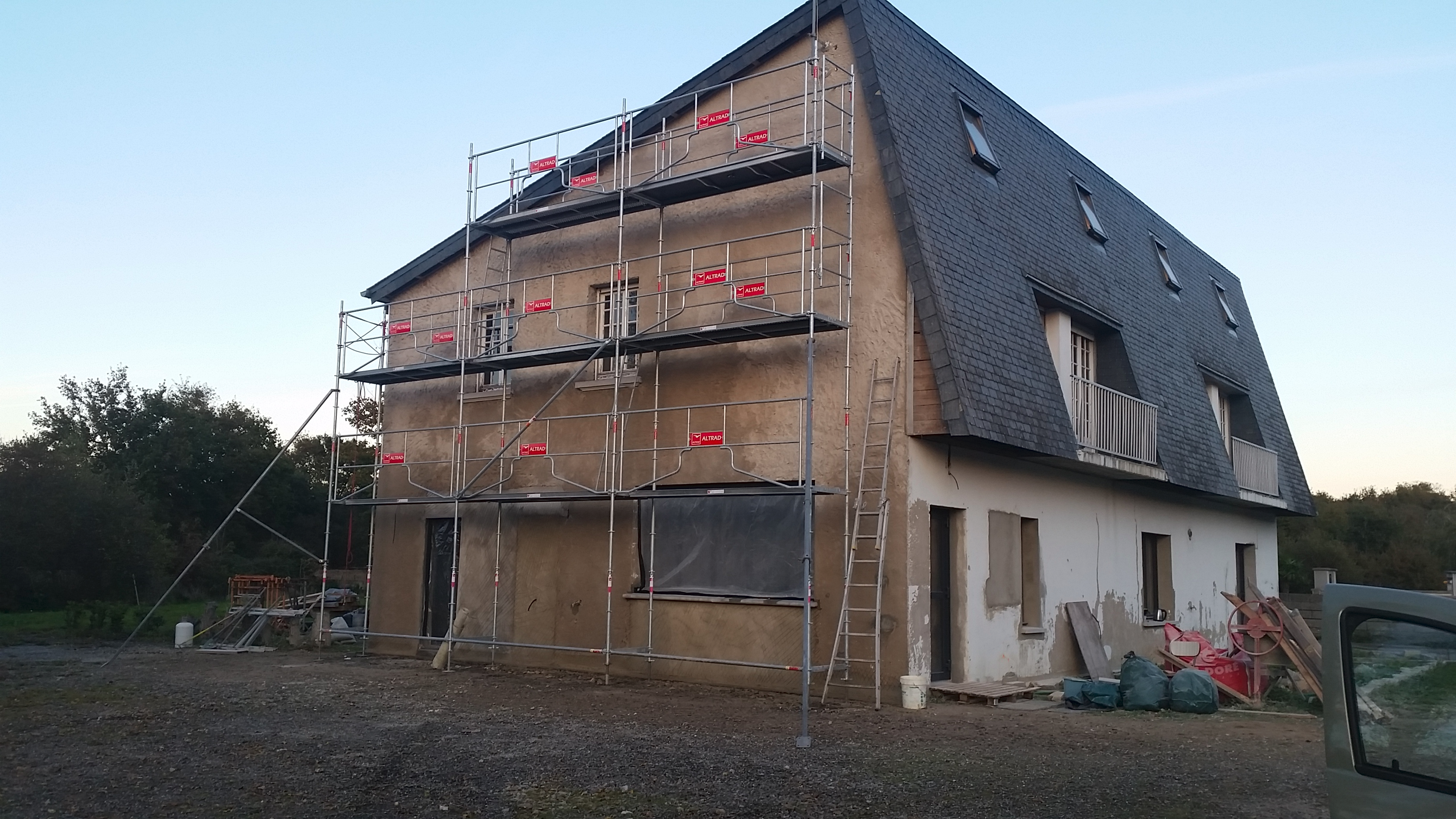 Et comme l'intérieur ne suffisait pas, nous en avons profité pour refaire en parallèle le pignon ouest, qui prenait l'humidité.