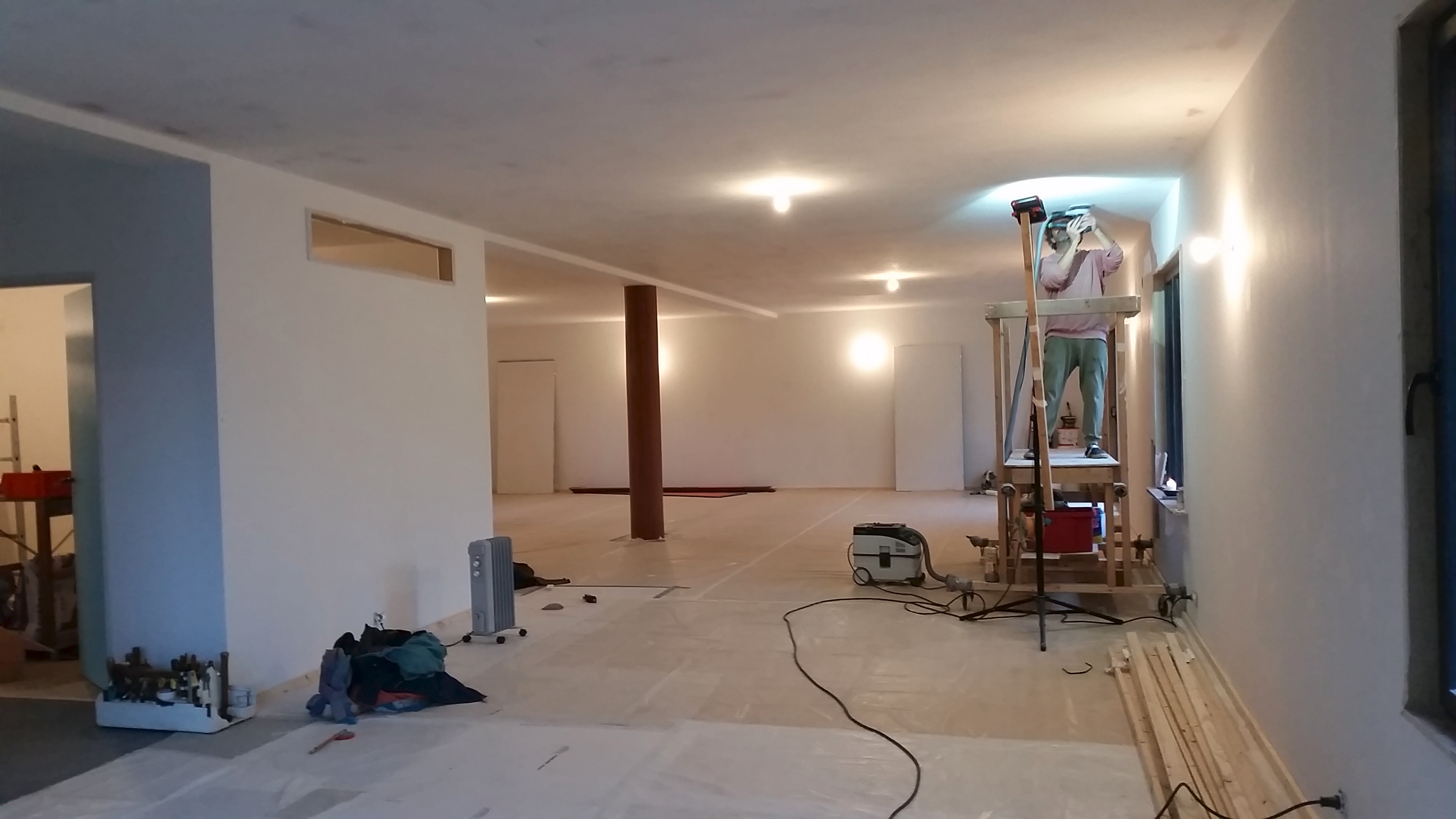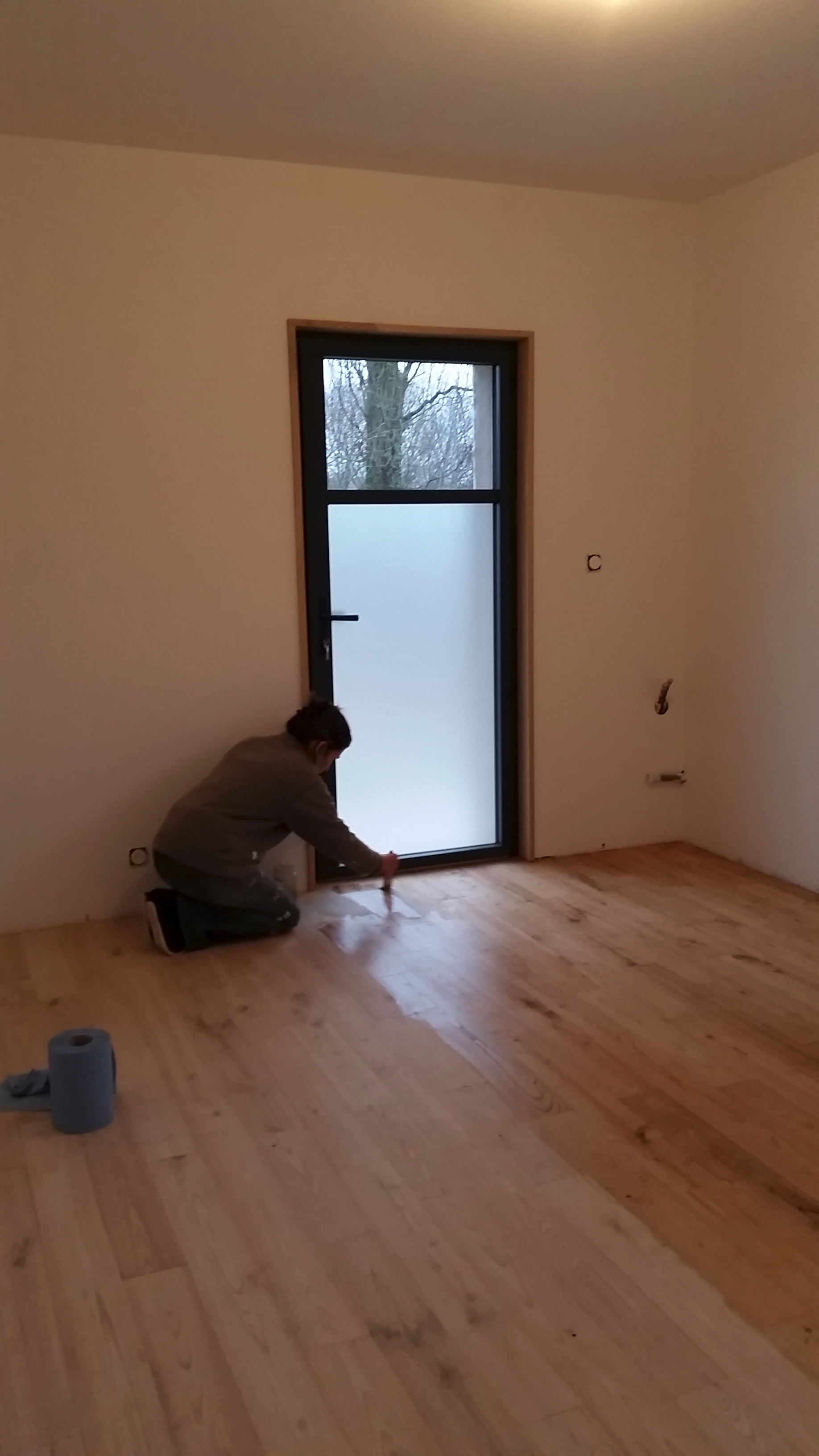 Pendant que la peinture sèche dans la grande pièce, nous commençons déjà le vernis dans les petites pièces pour gagner du temps ...